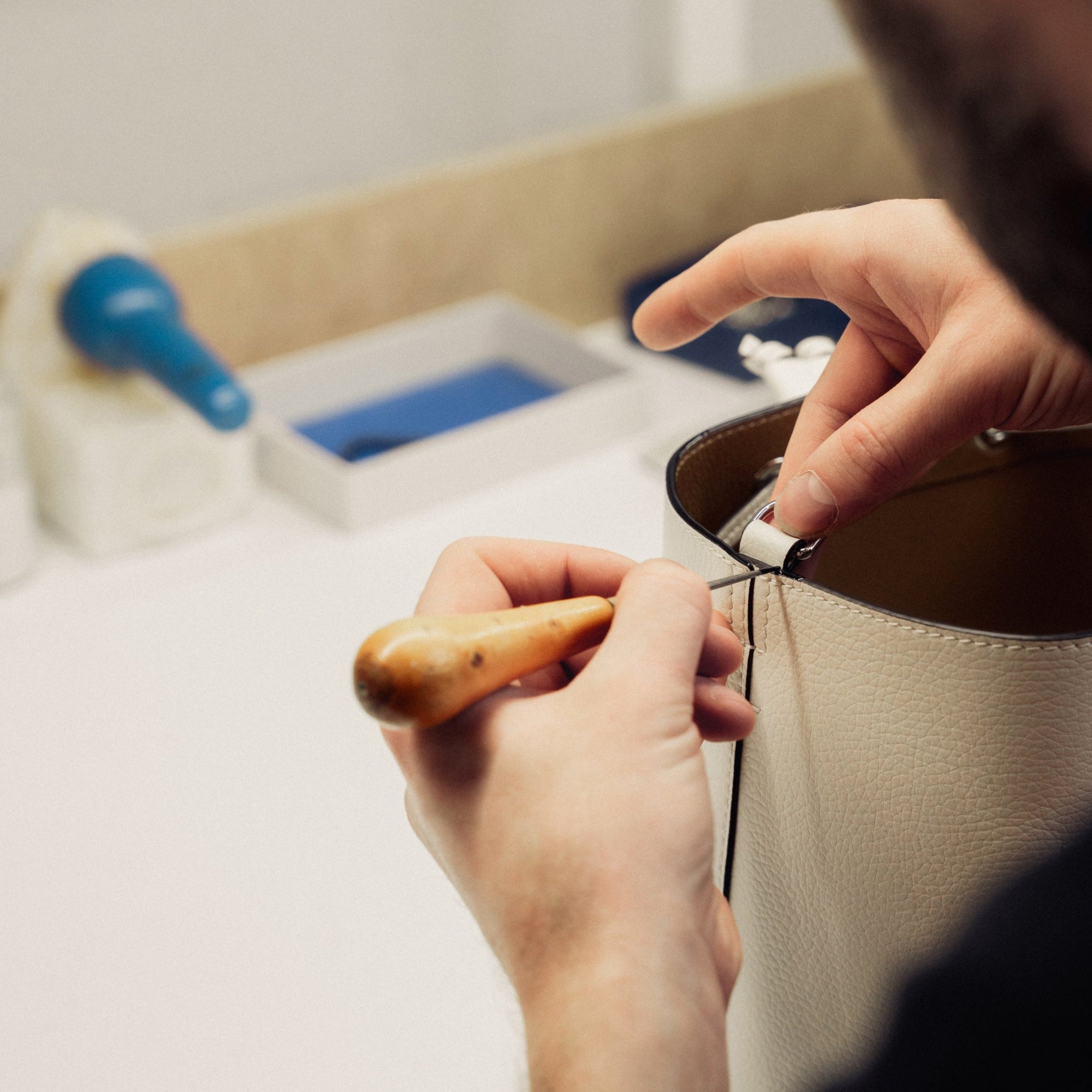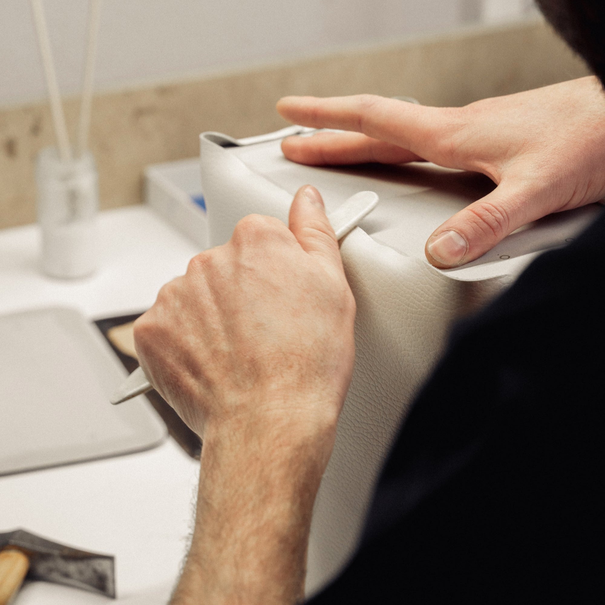 Ici chaque outil a un usage bien particulier. Les gestes sont sûrs et précis, inchangés depuis des années. Et pour cause, il est question de perpétuer un savoir-faire dont les racines remontent en 1898, année de la création de la Maison Le Tanneur.