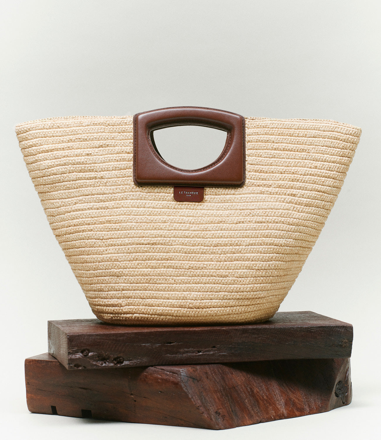 The raffia is 100% natural and sourced from Madagascar. The leather is Italian vegetabletanned leather.