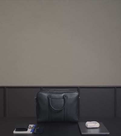 Porte documents avec pochette ordinateur 14-15", passant trolley et départs poignées signature. Marquage Le Tanneur et zip finition argent. Porté main, épaule ou croisé grâce à sa bandoulière ajustable et amovible.