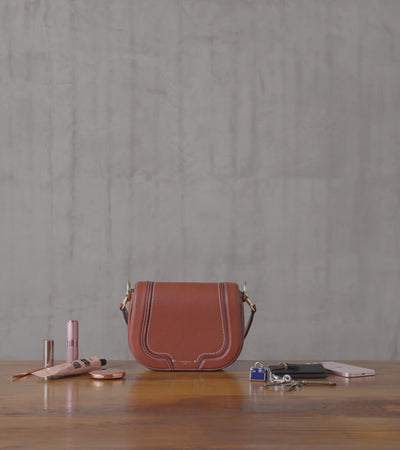 Ella medium crossbody bag in grained leatherMetallic accessories in light gold finish.