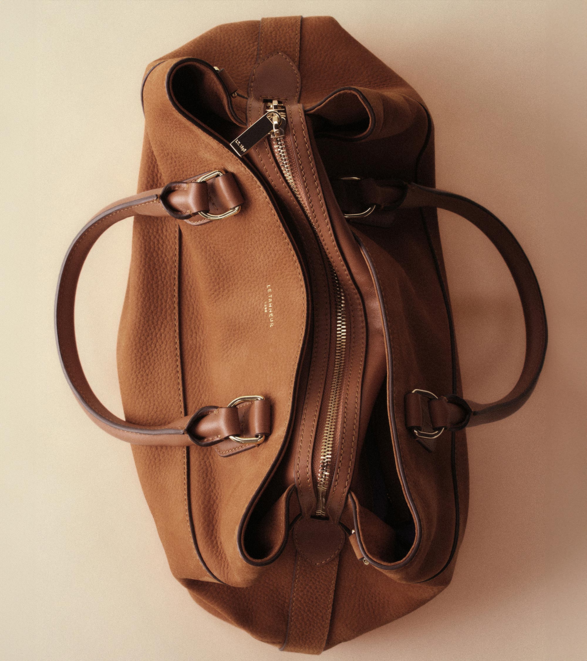 Sous de délicates feuilles de papier de soie se cachent nos pièces de grande maroquinerie. Protégées et bien au chaud dans leur pochon siglé Le Tanneur.